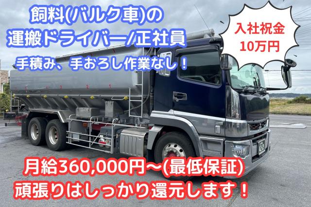 【入社祝金10万円!】飼料運搬車(バルク車)ドライバ―/充実の給与体系!賞与年2回 大型免許必須