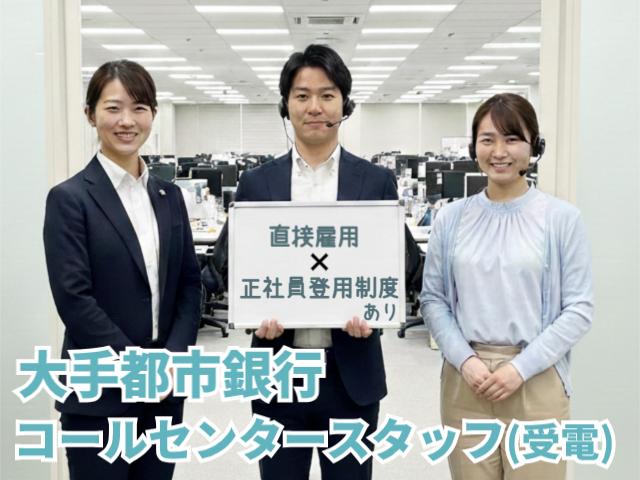 大手都市銀行のセンターで、電話受付とデータ入力のお仕事です。未経験の方も大歓迎!