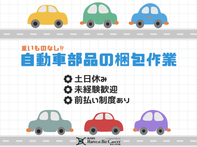 | 仕事内容 | \重量物はほとんどなし!/ 自動車部品の梱包スタッフ募集 【週の勤務日数】 5日 【主な業務内容】 自動車部品の梱包作業を担当していただきます◎ 数グラム〜7kgまでの軽量部品がメインで、 箱詰めや仕分けなどシンプルな作業です♪ 扱う部品は小型・軽量中心なので、未経験の方でもすぐに慣れていただけます! |