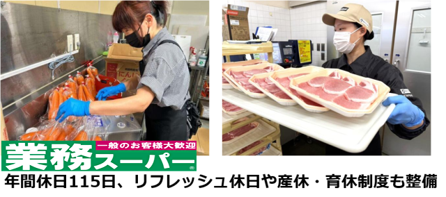 | 応募資格・経験 | ・学歴不問 ・未経験者OK ・青果部門:青果の業務経験ある方優遇 ・精肉部門:精肉加工経験ある方優遇(丸刃スライサー経験) 【こんな方にピッタリ】 ・食に関わる仕事に興味がある方 ・チームワークを大切にできる方 ・キャリアアップを目指したい方 |