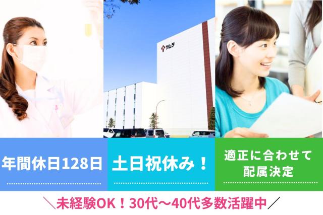 ツムラの事務職、品質試験サポート、生産設備開発実験サポート (適正に合わせ配属先決定) 土日祝休み