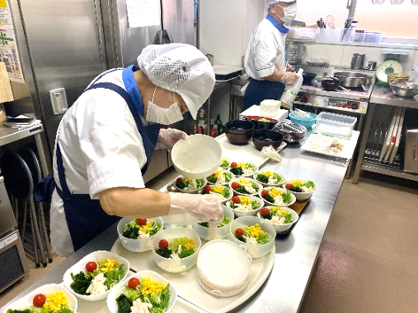 調理は調理師が献立に沿って行いますので、その補助をしていただきますので、難しい作業はありません。