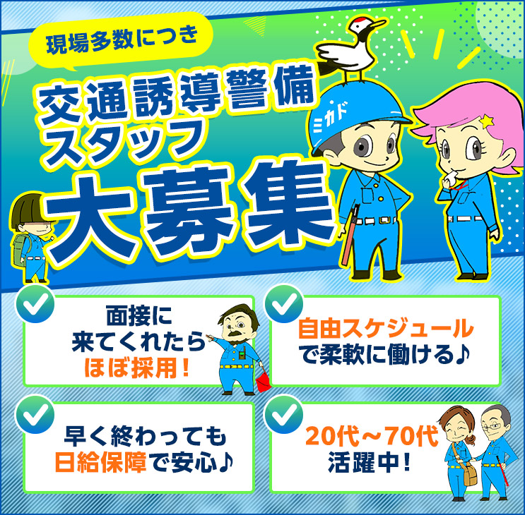 ≪交通誘導≫働きやすさに自信あり!自由なシフト/丁寧な研修/日給保障/履歴書不要…and more!