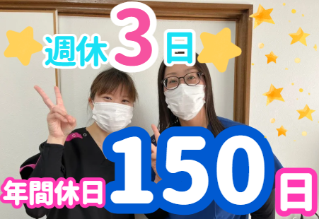 | 休日・休暇 | 【休日・休暇】 ・完全週休3日制 ・年間休日:150日 ・年次有給休暇(法定通り) ・夏季休暇:2日 ・冬季休暇:3日 ・慶弔休暇 ・育児休業 ・介護休暇 |