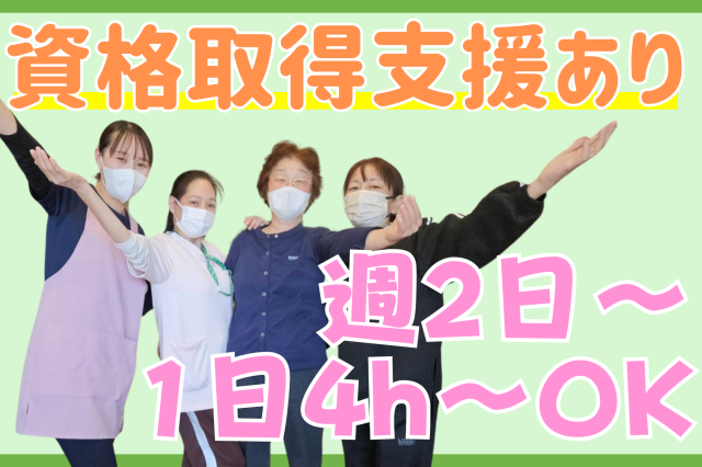 | 応募資格・経験 | 【必須資格】 ・初任者研修以上 ・普通自動車運転免許 ※無資格・未経験の方でも一度ご相談ください! \下記経験や資格をお持ちの方歓迎♪/ ・実務者研修 ・介護福祉士 |