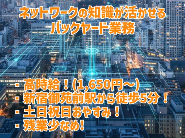 経験者歓迎!培ったNW知識を活かすバックヤード事務。残業月10h程&休暇も取りやすい環境◎