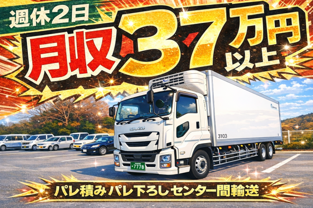 10t大型 センター間輸送(パレ積みパレ下ろし)、週休2日、月収37万円以上