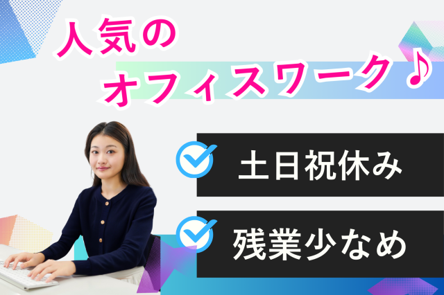 | 応募資格・経験 | <未経験OK!> ・PCスキル:Excelの基本操作 『アパレル販売の時に、受発注や在庫管理等で パソコンを使っていました!』という方もOK♪ \こんな方にオススメ/ ・土日祝休み&残業少なめで プライベートの時間も大切にしたい ・PCの基本操作ができる ・接客や販売、コールセンター経験を活かして 事務の仕事にチャレンジしたい など |