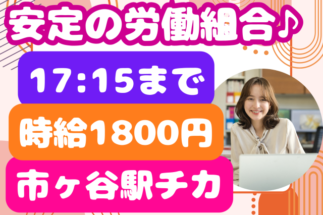 【市ヶ谷】駅チカ!時給1800円!残業なし◎簡単な資料作成など*事務STAFF