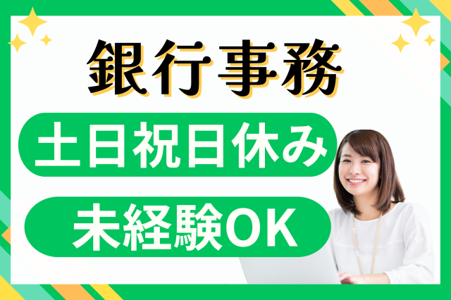 | 応募資格・経験 | ・未経験OK! 【こんな方におすすめ】 ・銀行の事務に興味がある ・子育てや介護などで一度離職したが、経験を活かして復職したい ・落ち着いた雰囲気の中で、長く安定して働きたい ・ワークライフバランスを重視したい など |