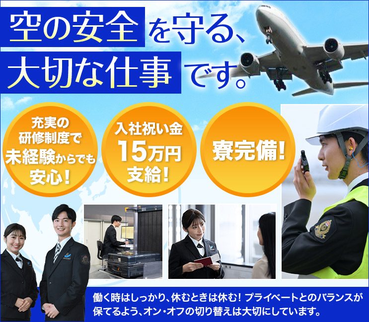空港があなたの職場に!未経験から始めた先輩多数/入社祝い金15万円/充実研修&寮完備