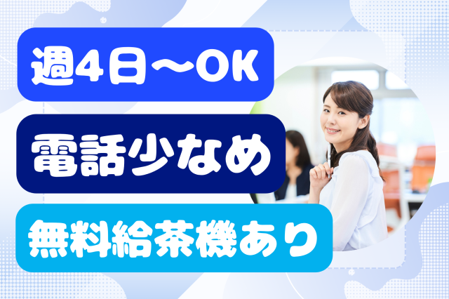 | 仕事内容 | / 電話少なめ! 家賃保証に関する審査事務 \ ◎当社スタッフも活躍中♪ ◎週4日〜お休み希望提出OK! ◎PCスキルは入力ができればOK* 【具体的には・・・】 ・書類のチェック ・データ入力 ・不備確認があった際に管理会社への電話 ・折返し電話対応 *1日数件程度 *個人との電話対応なし ・その他付随する事務(印紙貼り付け) など *業務割合:事務7割、電話3割 *座学研修・OJT研修あり <職場について> 大型事務センターでのお仕事! ・部署人数:260名 ・当社派遣スタッフ:7名 ・男女比:1:9 ・平均年齢:43歳 ・カフェ風の社員食堂利用OK(レンジあり) ・無料給茶機(煎茶/ほうじ茶/お味噌汁など) ・休憩室あり ・服装:オフィスカジュアルOK (Tシャツ/デニム/スニーカー可、ネイルOK) |