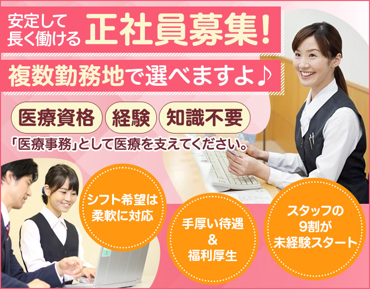 日勤のみ・原則定時退社!大手病院で医療事務募集。研修・マニュアル・サポート充実で未経験でも安心です♪