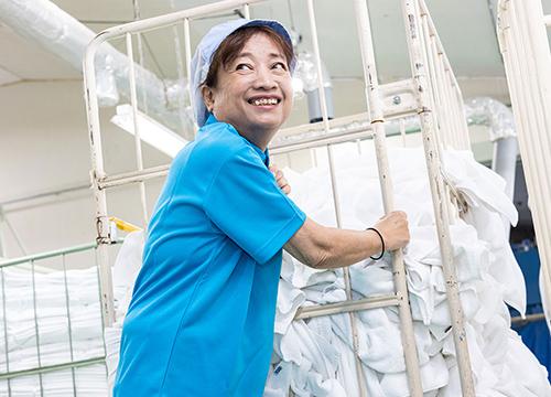 | 仕事内容 | ホテル客室内で使用されたリネン品(シーツ・タオル)を 専用ワゴンに積み込む作業。 専用のバッグに入っていますので、バッグごとワゴンに 積み込む作業となります。 |
