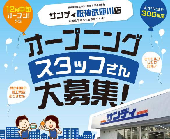 ★12月中旬オープン予定★サンディ阪神武庫川店★【スーパーのセミセルフレジ・早朝品出しSTAFF】