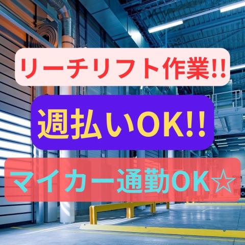 高時給!物流倉庫内でのフォークリフト作業/車通勤可能/週払い/土日祝休/社保完備/社員登用