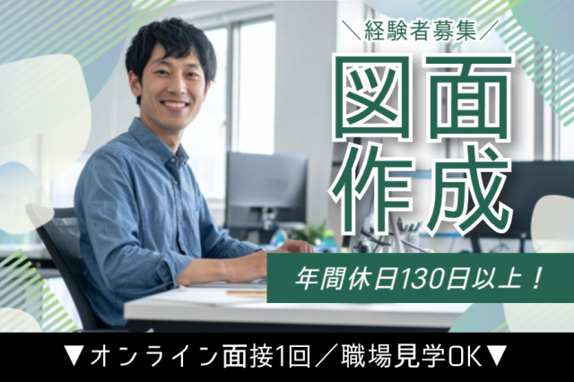 CAD経験を活かせる!【鉄骨図面の作成】◎年間休日130日◎弁当注文OK◎男性活躍◎面接1回|姫路市
