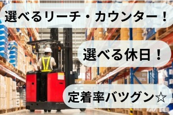 選べるリーチ・カウンター/選べる休日/週払い/マイカー通勤OK/社保完備/正社員登用あり/昇給あり