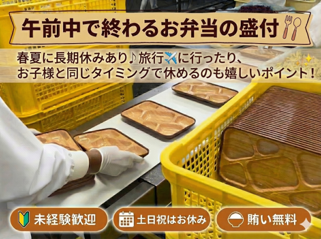 【学校給食の盛付】本社工場◆土日祝休み♪◆交通費支給あり!◆まかない無料!