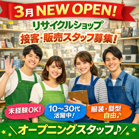 【オープニングスタッフ】リサイクルショップの接客・商品管理