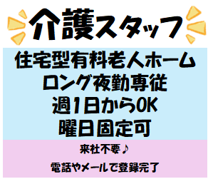 | 応募資格・経験 | 【資格】 初任者研修、ヘルパー2級、実務者研修、介護福祉士 必須 【経験】 有資格者であれば経験不問 |