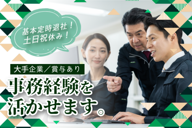 | 仕事内容 | 事務経験者募集! (お仕事番号:8-48 I) …………………………………… 〜春から、新しい自分へ〜 「心機一転、3月から新しい環境で 頑張りたい」そんな方にオススメ◎ …………………………………… 【お仕事内容】 エネルギーインフラを支える製品の 図面管理や事務サポートを ご担当いただきます。 <具体的には…> ・図面管理/整理(社内システム使用) ・実証検査に関わる補助業務 (準備やデータ評価など) ・メール(日本語/英語)、電話対応 ※英語でのメールは社内の翻訳ツールを 使用します。 <入社後は…> まずは社内システムの使い方や、 業務の流れを覚えることからスタート。 できることから少しずつ業務を お任せしますのでご安心ください。 【求人の魅力】 ◇1|スキルアップ可能 事務の経験を活かしつつ、 図面や検査などの技術的な 知識も習得できます。 ◇2|年間休日120日以上 土日祝休みで長期休暇あり◎ 定時退社が基本なので 無理なく働けますよ。 ◇3|落ち着いた雰囲気の職場 20代〜50代の男女活躍中! 適度な雑談もあり質問や相談が しやすい環境です。 |