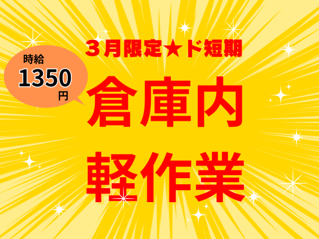 【急募】3月限定★ド短期!未経験OKのカンタン倉庫内作業|駅チカ5分・職場環境◎