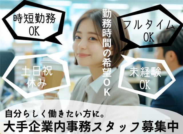 土日祝休みで始業・終業・勤務時間の相談OK【1日4h〜・フルタイムOK/未経験OKの事務】大手企業内