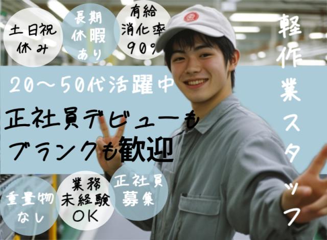 重量物なしで無理なく勤務♪20〜50代活躍中【手当・昇給で高収入可能/仕上げ軽作業】マイカー通勤OK