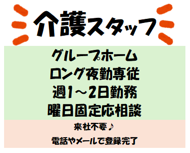 | 職種 | グループホームでの介護業務全般(夜勤専従) |