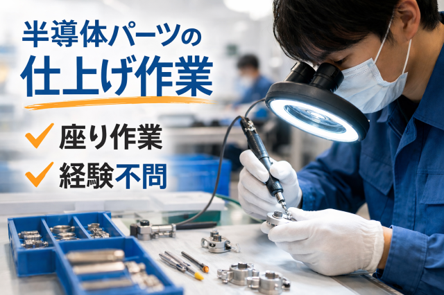 | 仕事内容 | 半導体装置に使われる小型部品の仕上げ加工を担当していただきます。 作業は座り仕事が中心で、落ち着いた環境でコツコツ進めるお仕事です。 【仕事内容】 ・手のひらサイズの半導体部品(バルブ部品)の仕上げ加工 ・リューター(歯医者の器具のような小型工具)を使った細かなバリ取り ・拡大鏡を見ながら部品表面をきれいに整える作業 ・加工後の簡単なチェック作業 ◆扱う部品は小型で、力仕事はほとんどありません。 未経験の方でも、作業手順は丁寧にお教えします。 ◆現在、半導体関連製品の増産対応のためスタッフを増員募集しています。 これまで短期スタッフが中心でしたが、長期で働いていただける方も歓迎。 ◆中国人、ベトナム人、グローバルスタッフ活躍中。 |
