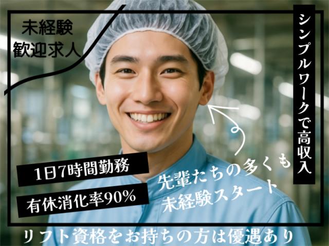 | 応募資格・経験 | 【応募条件】 ■高卒以上 ■普通自動車免許(AT限定可) ◎業務に関する必須条件なし/経験不問 ◎未経験OK!第二新卒・ブランク歓迎! 【優遇条件】※いずれか ■食品工場での製造経験 ■フォークリフト技能講習修了証 ■フォークリフト(リーチ)実務経験 フォークリフト経験をお持ちの方は 入出荷作業など物流サポートとして 軽作業とバランスよくご活躍いただけます! |
