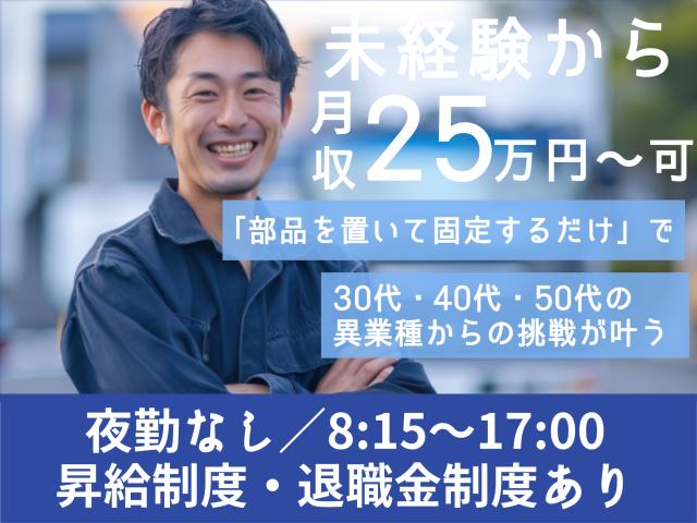 未経験から月収25万円〜可【しっかり稼ぎたい派の30〜50代が中心】部品を置いて固定するだけの軽作業