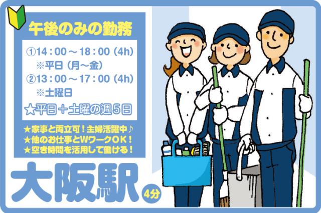 【大阪市北区梅田】午後のみの4h短時間清掃!空き時間を有効活用♪主婦(夫)活躍中♪経験不問!
