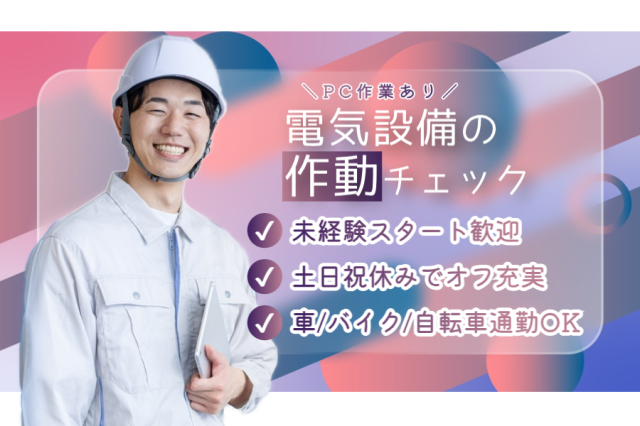 \急募/未経験スタート歓迎【設備の動作確認・PC作業】資格取得でキャリアアップも可◎マイカー通勤OK