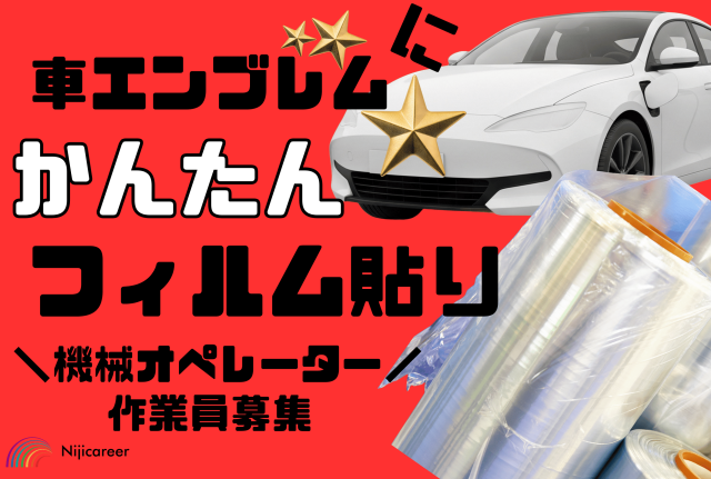 | 職種 | 【日勤固定】車エンブレムのフィルム貼り |