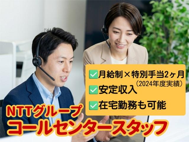 【月給制×特別手当年2ヶ月(2024年度実績)】安定収入のNTTグループ電話問い合わせ対応業務。日祝休み・福利厚生充実・在宅勤務も可能