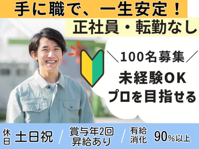 | 待遇 | ■各種社会保険完備 ■賞与年2回支給 ■昇給制度あり ■残業手当/夜勤手当 ■交通費支給(全額) ■入院保険加入済み(自己負担なし) ■退職金制度あり(入社3年目以降) ■インフルエンザ予防接種補助 ■ストレスチェック・健康診断(年1回) ■弁護士無料相談サービスあり ■正社員・転勤なし [働きやすい職場環境] ■駅チカ&バイク・自転車通勤OK! ■社員食堂・売店あり(弁当持ち込みOK) ■作業服・その他備品貸与 ■受動喫煙対策済(屋外喫煙所あり) [就業サポートあり] 専任担当が入社案内〜手続き、 就業後の相談など幅広くサポートします。 |
