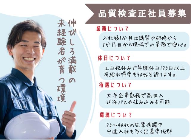 未経験から年収460万円〜可【品質管理/1か月座学など講習あり】土日祝休■住み込みOK■送迎バスあり
