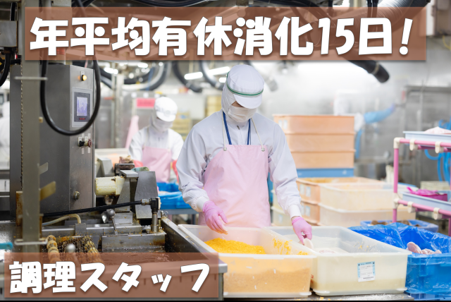 食品工場内での日勤調理◆パート有休取得平均15日/年◆月2〜4日はアナタの希望日に休めます◆