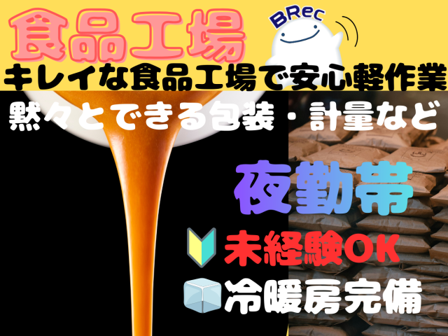 夜勤で安定収入!未経験から始められる食品工場の簡単軽作業スタッフ募集!