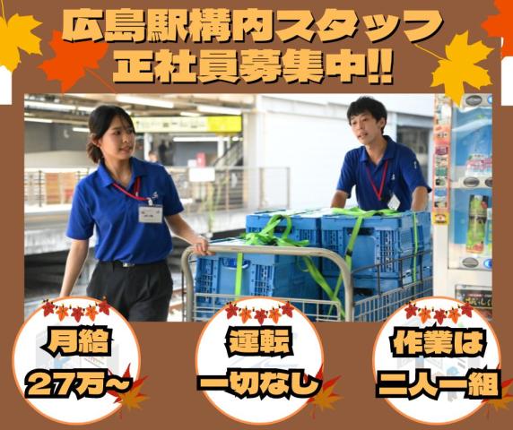 | 勤務地 | ・広島営業所(広島県広島市東区上大須賀町16-1 ) ジェイアール西日本商事株式会社 広島オフィス内 ※営業所のある区内のJR駅構内および関連施設をまわります。 |