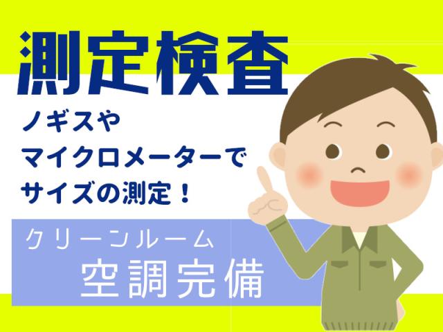 | 仕事内容 | 車に使う部品の サイズを検査していただきます。 ▼扱う部品 プラスチック製! ペットボトルのキャップ位から ティッシュ箱位の大きさ! サイズも小さく、軽い物ばかりなので扱いやすい♪ ▼使用器具 サイズの測定には、 ノギスやマイクロメーターといった、 長さを測定する器具を使います! 測定するものをはさんで、 厚みや長さを測る器具なので 使い方も慣れたらカンタン♪ 使い方も丁寧に教えてもらえるので 未経験でも安心です♪ ▼その他 製品に傷がないかどうかを 目で見て確認もしていただきます。 ▼空調完備 クリーンルームと呼ばれる キレイな室内でのお仕事です☆ 空調バッチリなので、 季節問わず快適で働きやすいと好評! |