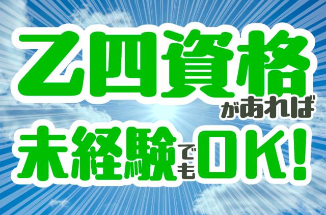 | 応募資格・経験 | 乙種第四類(乙4)危険物免状保有者に限る ★未経験者大歓迎 |