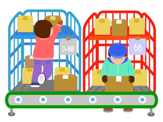 海外からの荷物を保管・輸送している倉庫内で仕分けのお仕事です。