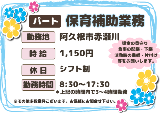 | 休日・休暇 | シフト制 ※お休み相談可 |