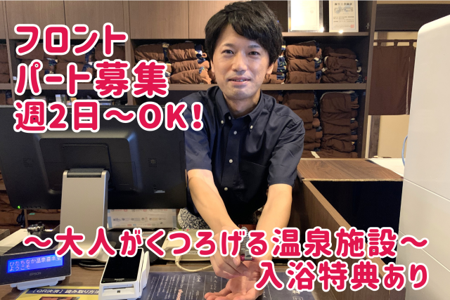 年中温かくてキレイ♪癒しの温泉施設 フロント・受付 週2日~OK WワークOK 嬉しい入浴特典有◎