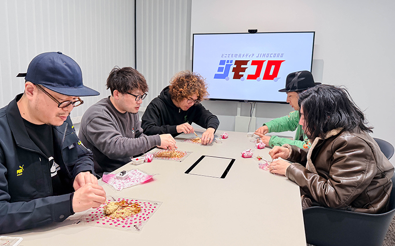 先日山梨県に行った人間(左奥の奴)が色々な山梨みやげを買ってきたので、それをジモコロ編集部の愉快な仲間たちと食べるだけのミニ記事が始まった…かと思ったら瞬く間に終わろうとしております。まさに人生と同じですね。