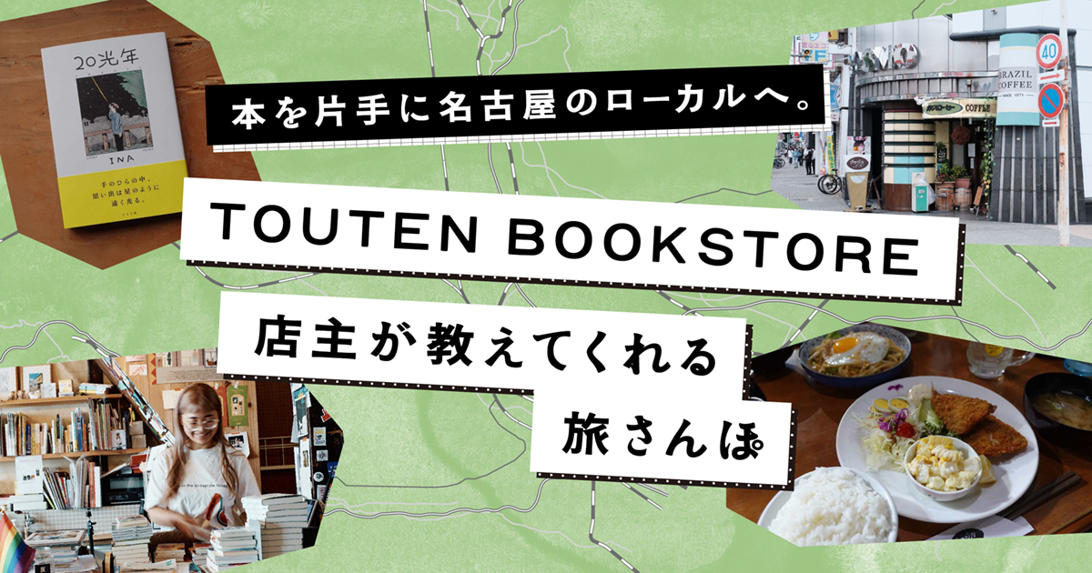 今回お話を伺ったのは、愛知県名古屋市の熱田区にある「TOUTEN BOOKSTORE」の古賀詩穂子(こが・しほこ)さん。行けばきっと、自分が知らなかった視点や世界に接続することができる、生きる選択肢を増やす本が見つかる。そして、安心して過ごせる。そんな書店だ。店内にはドリンクを買って楽しめる席もあり、その場で読書も楽しめるが、今回は本屋近辺である名古屋市熱田区に繰り出して本を楽しむスポットを紹介してもらった。