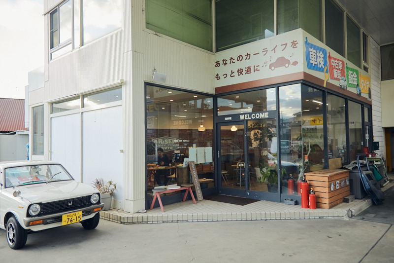 ここは有田石油、通称「アリセキ」。いわば、ガソリンスタンドの中にカフェと本屋、さらに自動車販売や洗車・コーティング専門店までが合体したお店です。